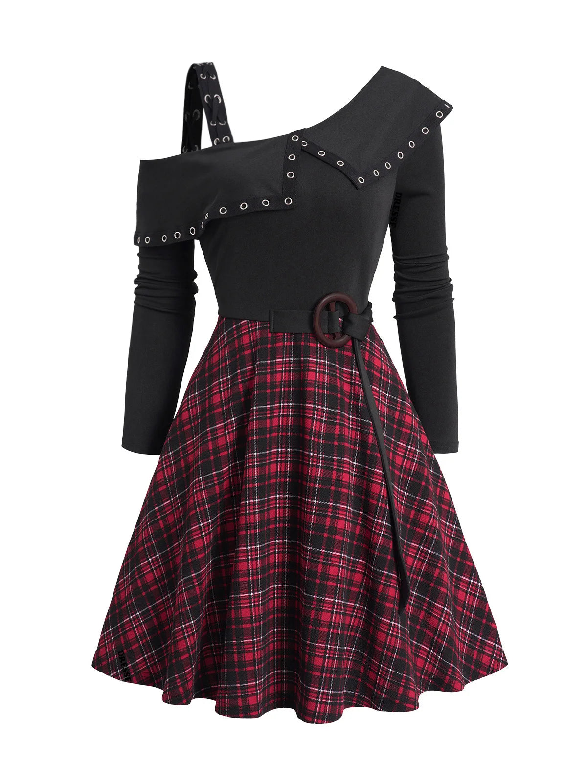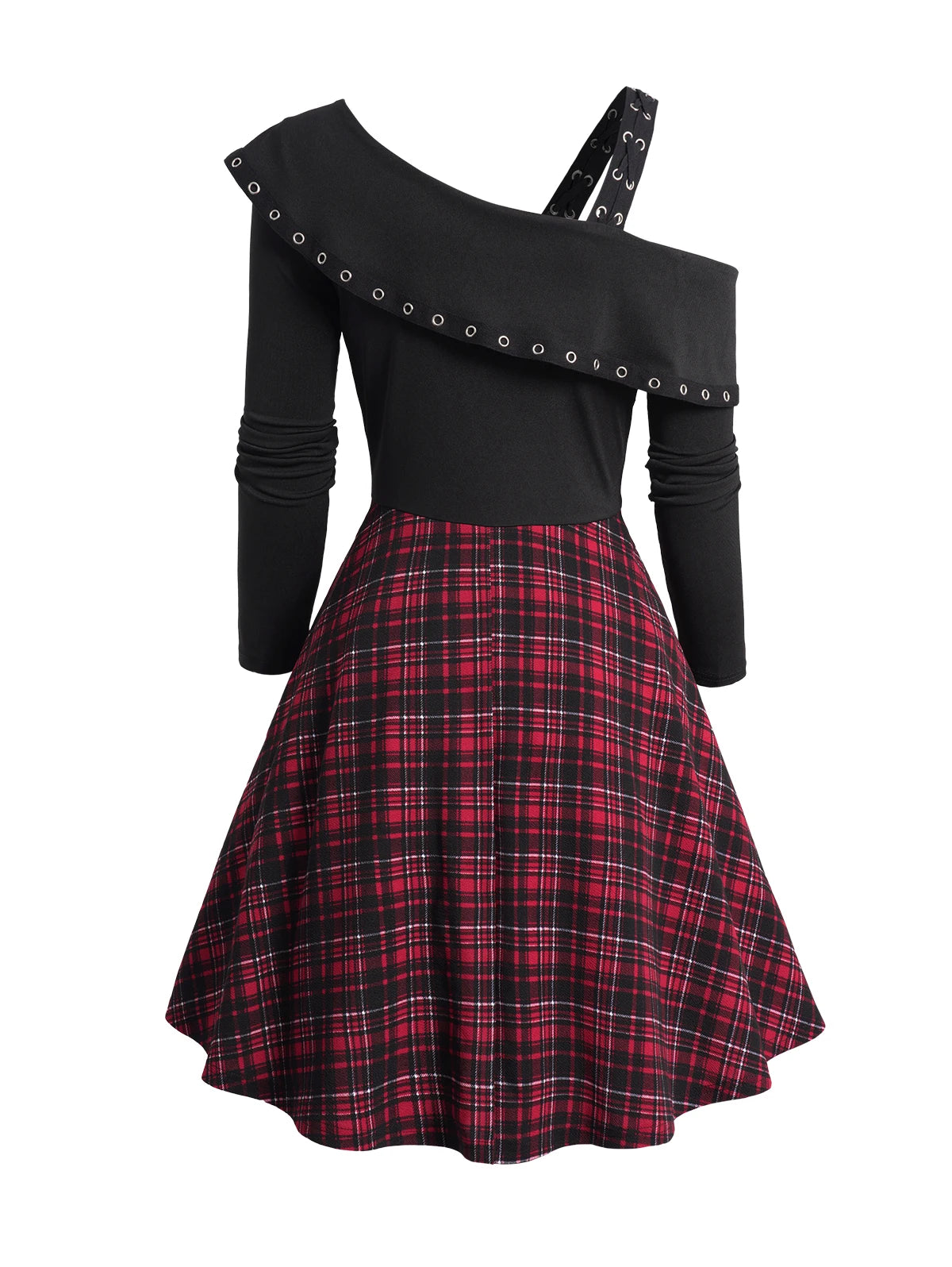 Asymmetrisk Kjole Sort Rød Ternet Punk Se muligheder