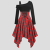 Punk Rock Asymmetrisk Rød Ternet Kjole med Korset XXL