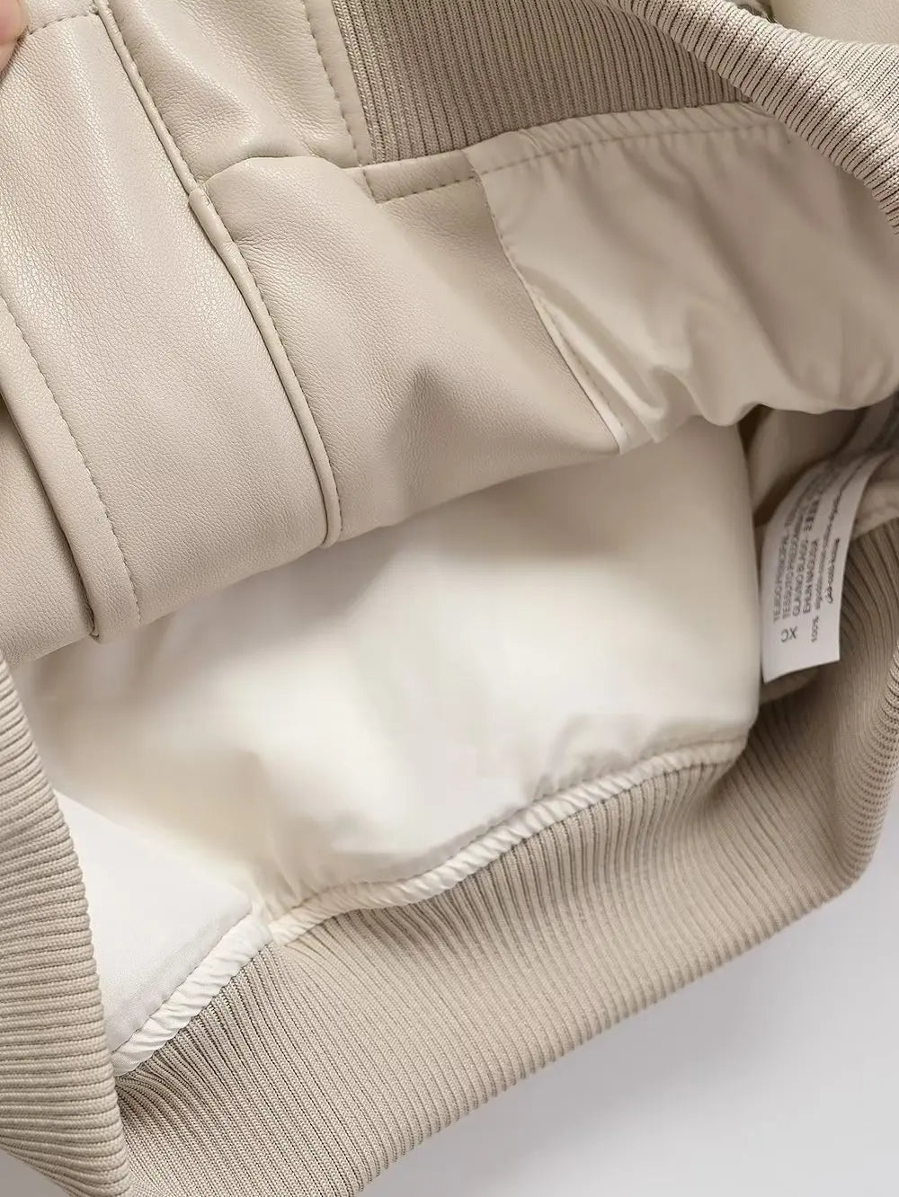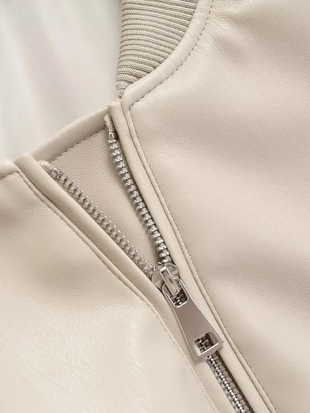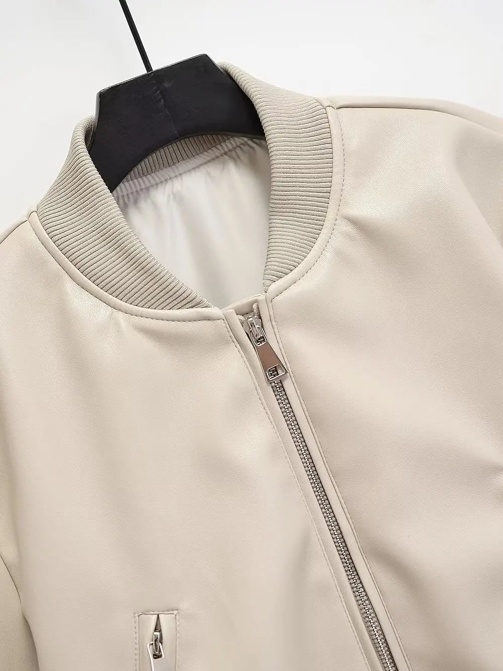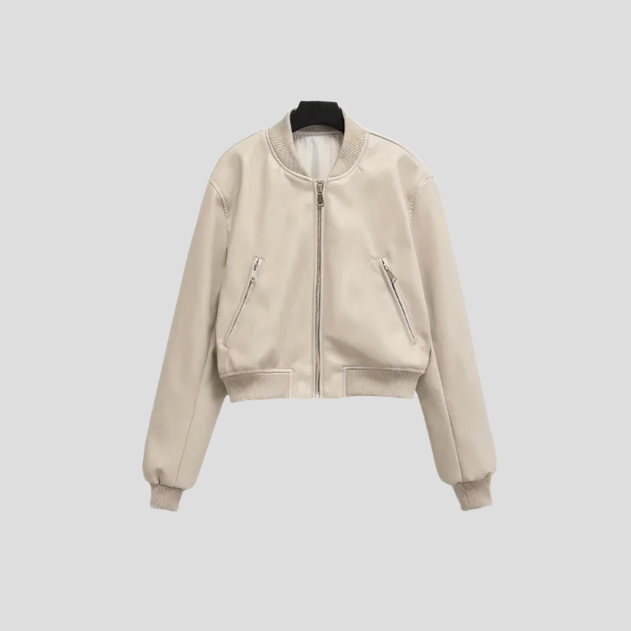 Beige bomberjakke i punk rock-stil med lynlåse og elastiske manchetter