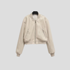 Beige bomberjakke i punk rock-stil med lynlåse og ribmanchetter