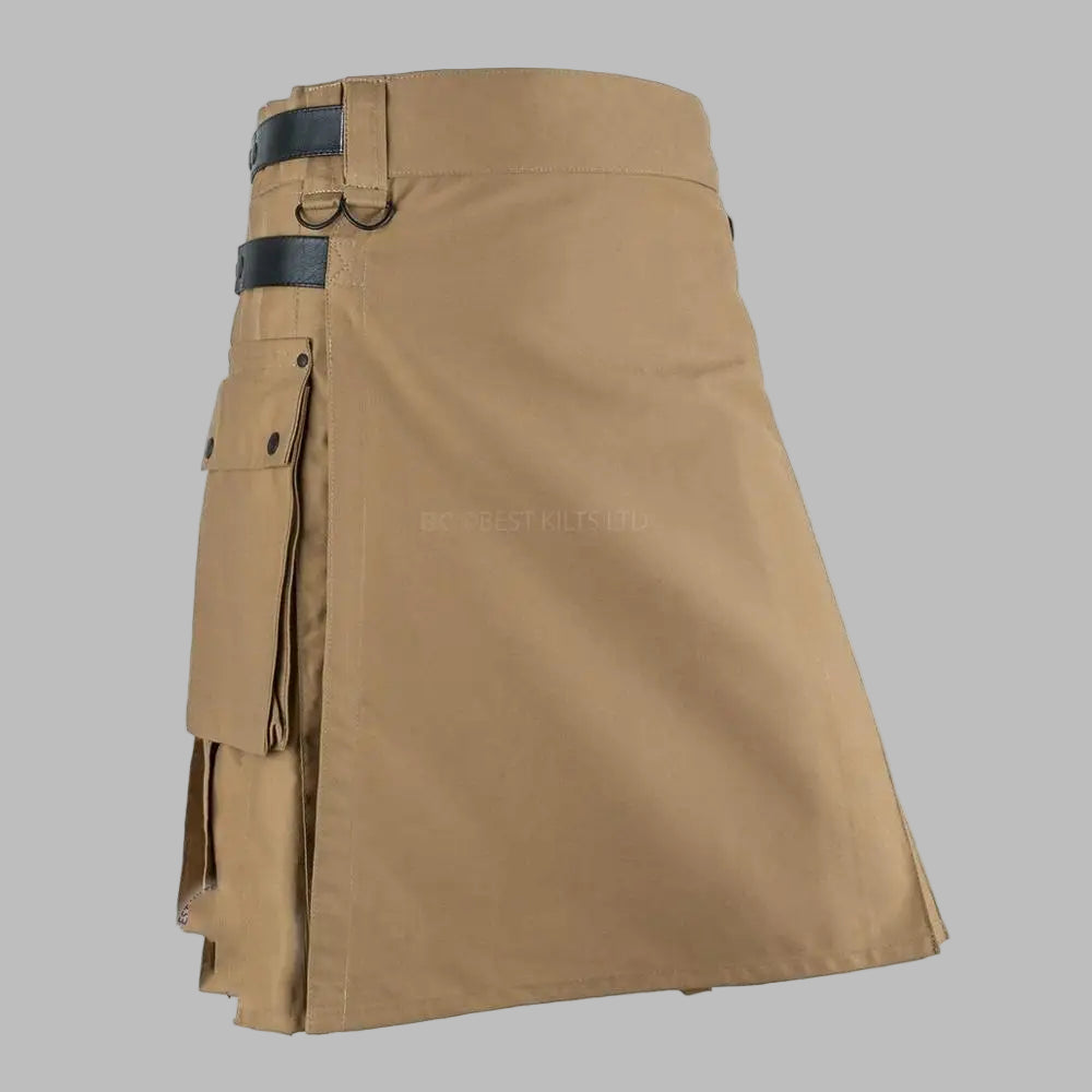 Beige Steampunk Kilt med Læderremme og Spænder Se muligheder