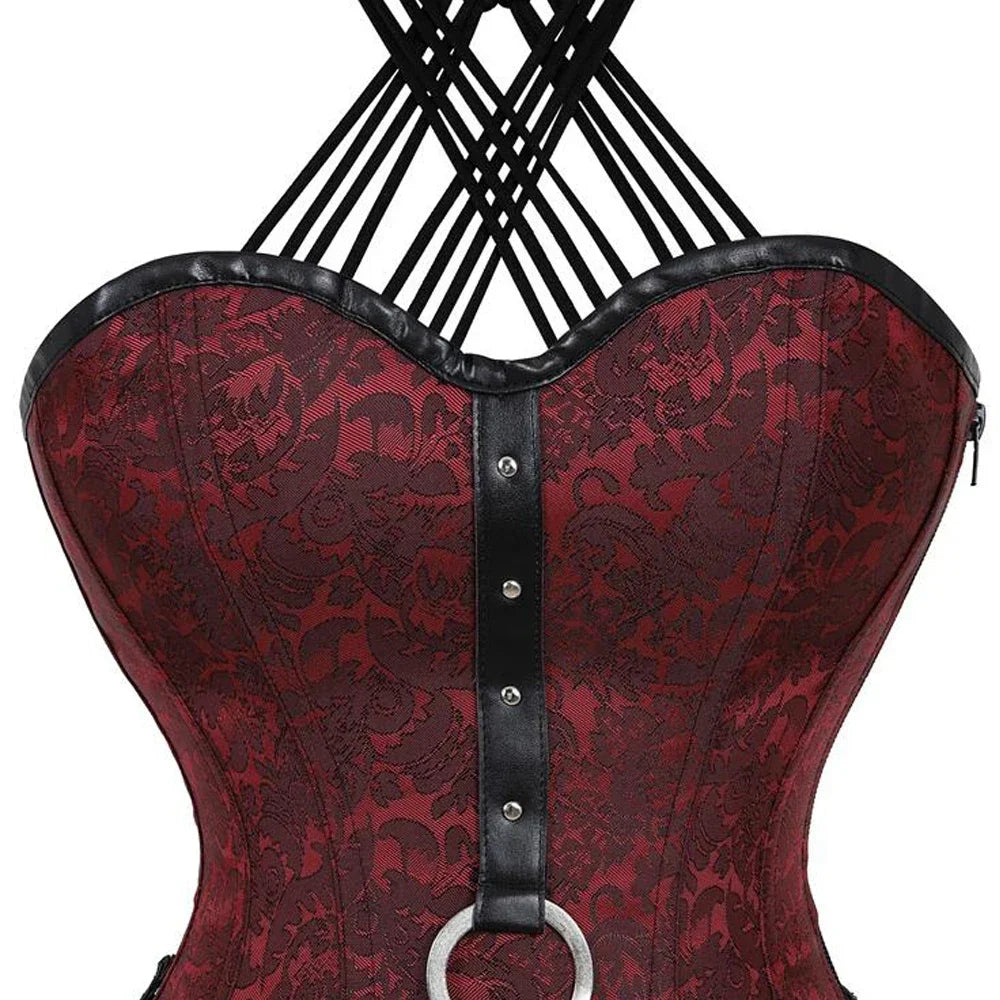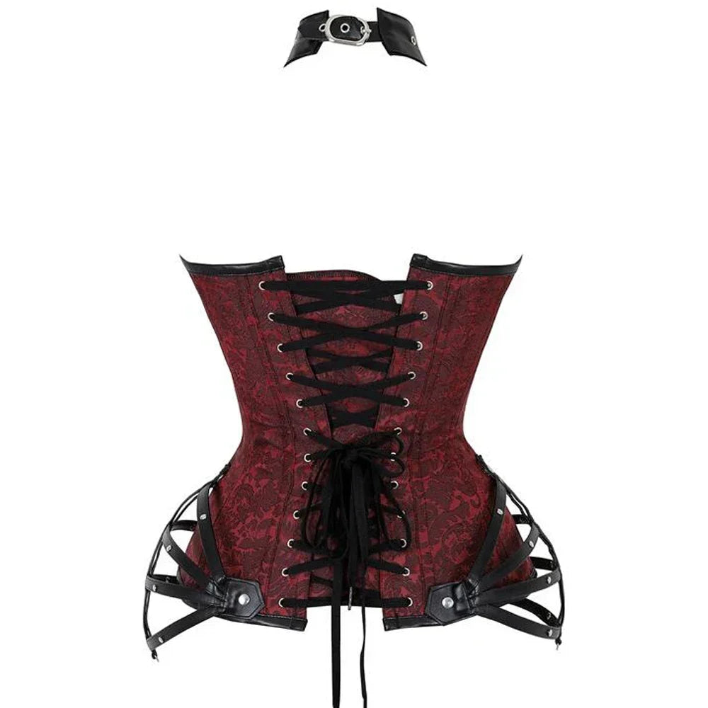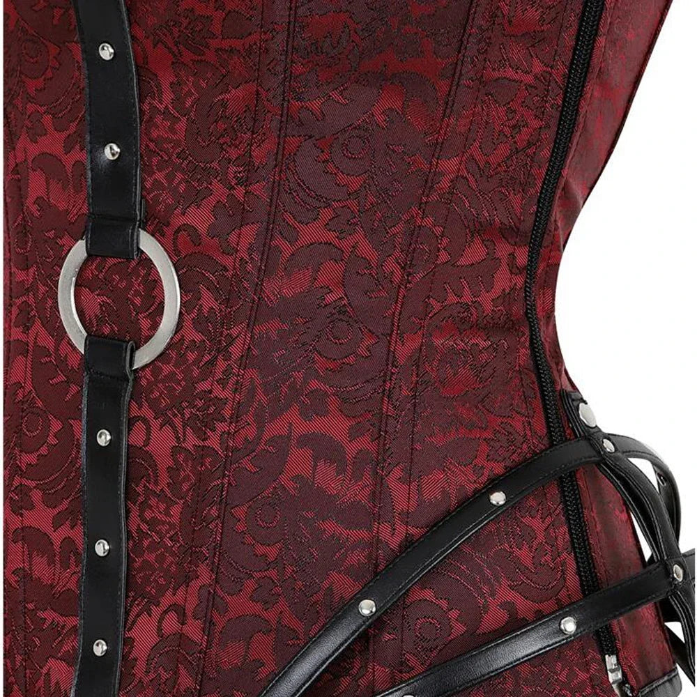 Punk Rock Korset med Stropper og Metalspænder Bordeaux 6XL