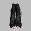 Brede Punk Cargo Bukser med Lommer i Sort Slidt Look