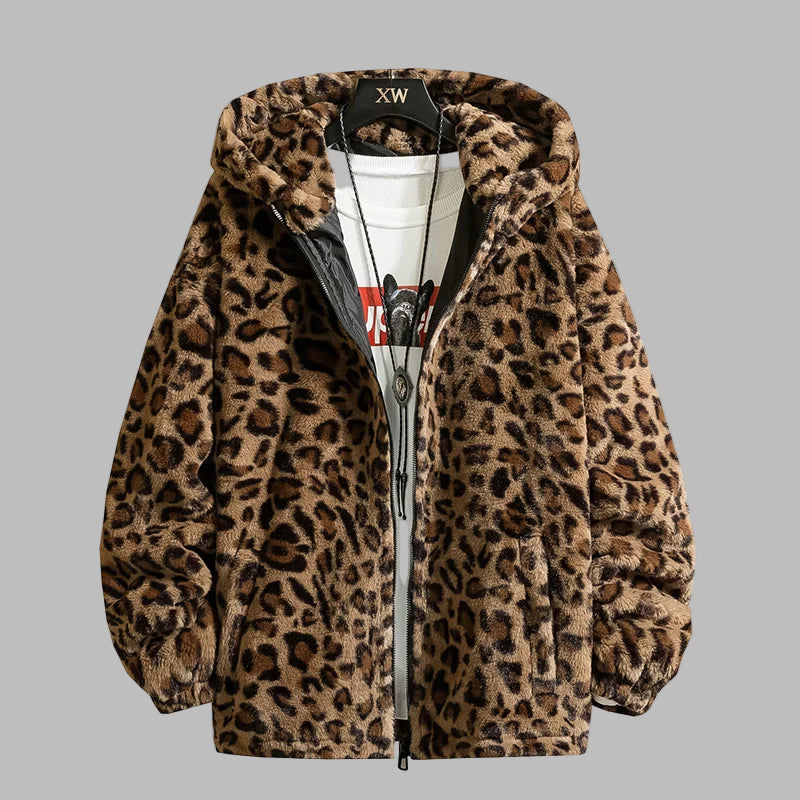 Brun Leopard Rock Hættetrøje i Plys Varm