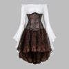 Brun Steampunk Kjole med Korselet og Dødningehoveder