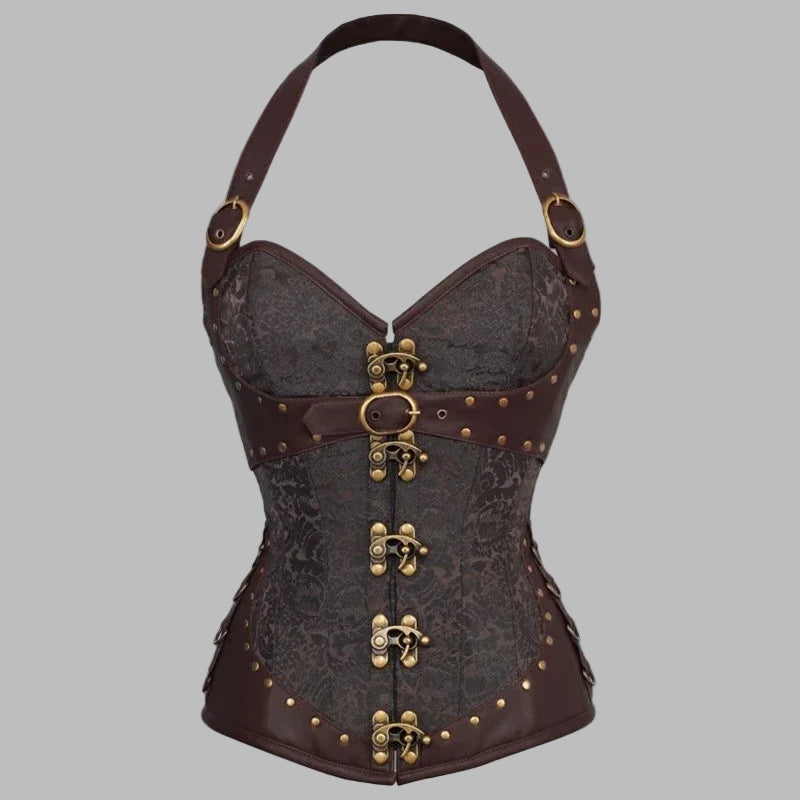 Steampunk Brun Korset med Glitrende Mønster og Metalklemmer til Kvinder XXL