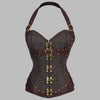 Steampunk brun korset med glitrende mønster og metalspænder til kvinder