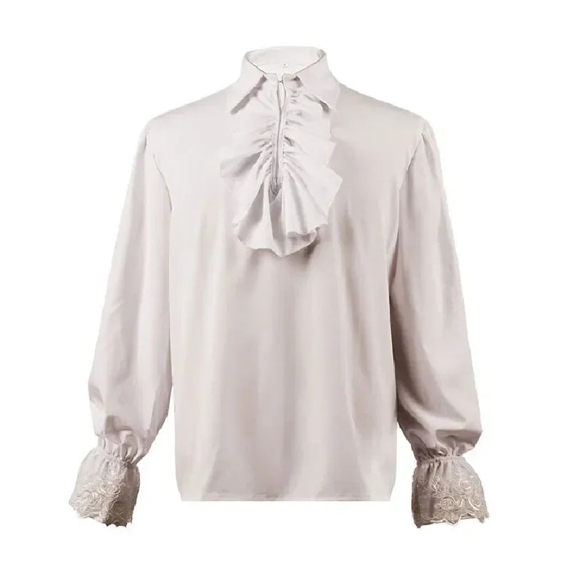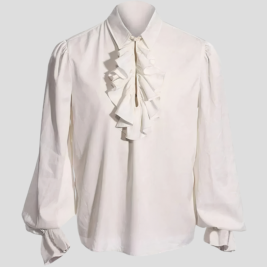 Cremefarvet Rock-skjorte med flæser og puffede ærmer