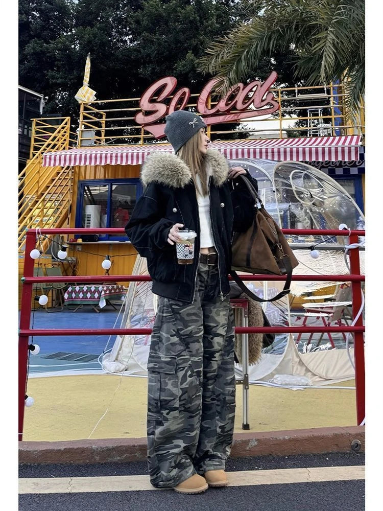 Dame Cargo Bukser Camouflage Militær Lommer Oversize