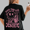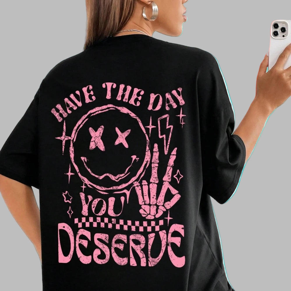 Dame T-shirt Oversize Grunge Rock Pink Smiley Print Se muligheder