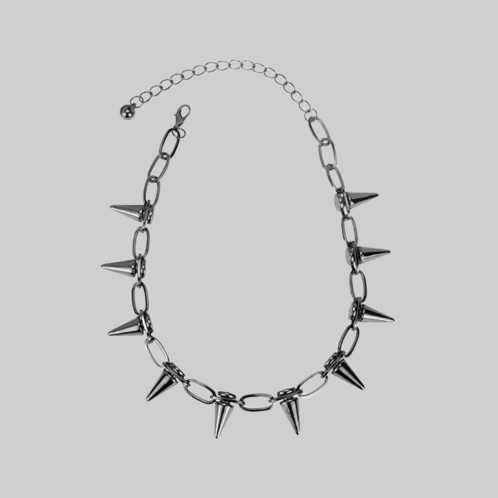 Gotisk kvindehalskæde med pigge i sort, 35 cm