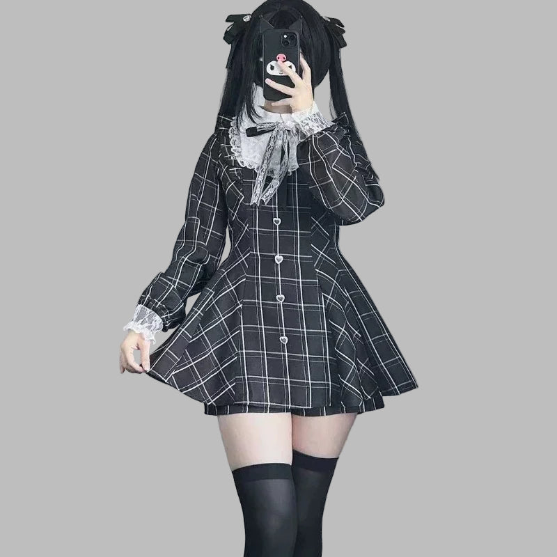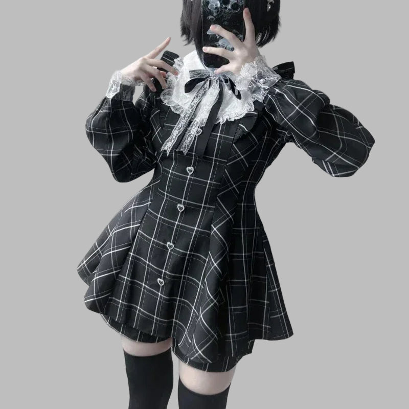 Gotisk Lolita Kjole Sort Ternet Blonde