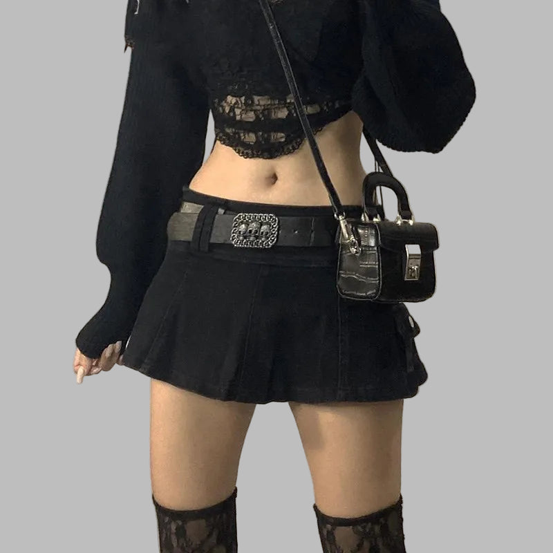 Gotisk plisseret mini nederdel punk med metalapplikation