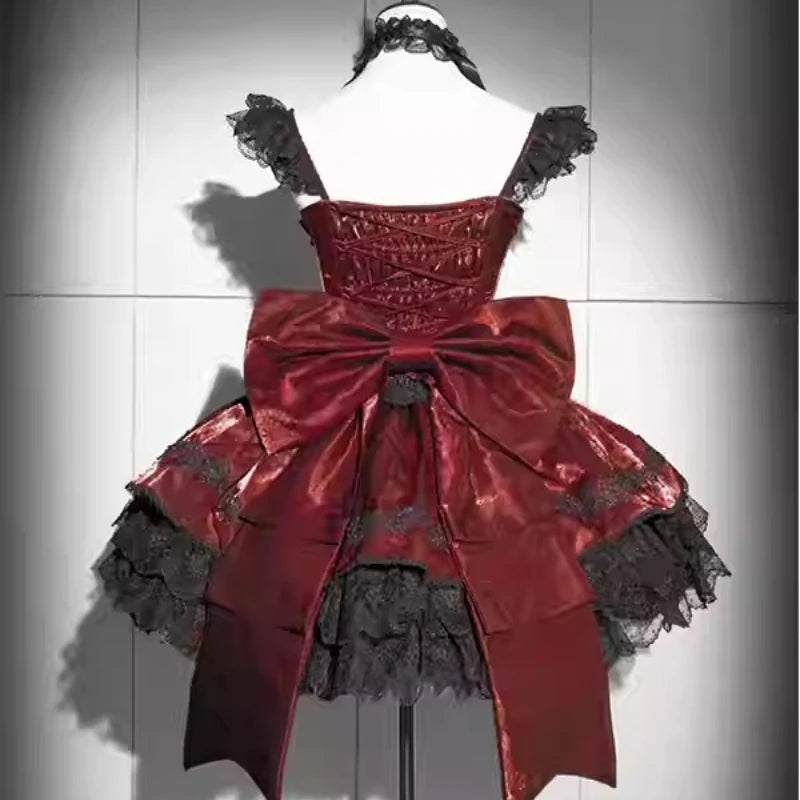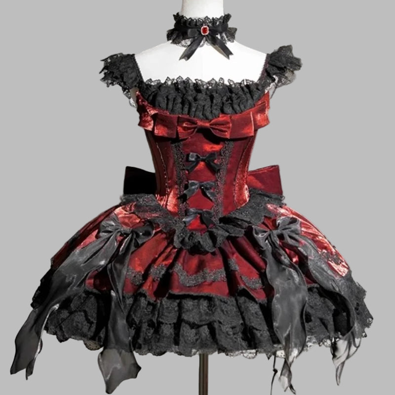 Gotisk Punk Lolita Kjole Rød Sort Blonde Se muligheder
