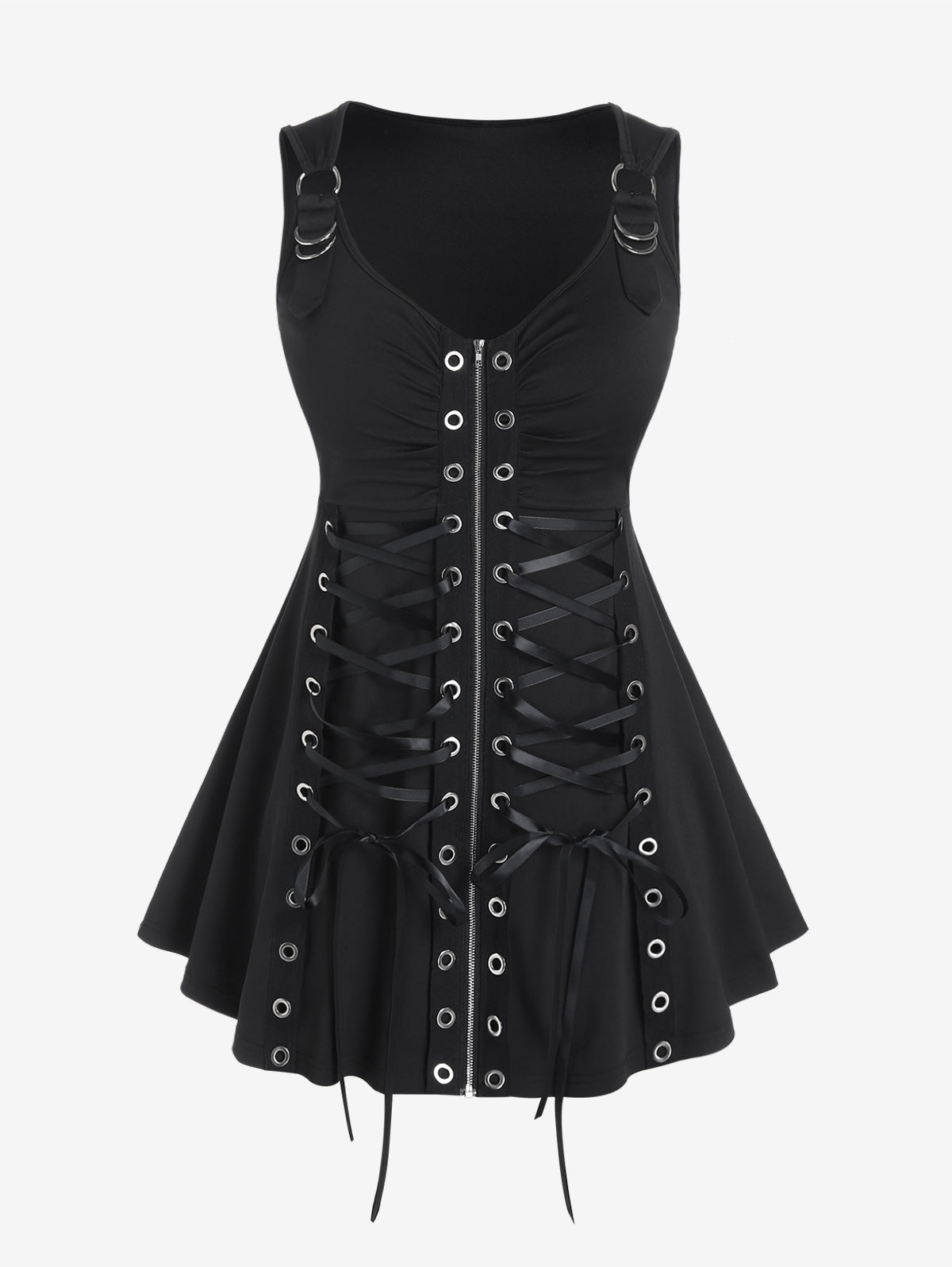 • Raffinerede Detaljer: Den fulde lynlåsklap og omhyggelige finish tilføjer et strejf af raffinement til denne gotiske kjole, mens det udsmykkede bælte med spænde introducerer et strejf af originalitet.