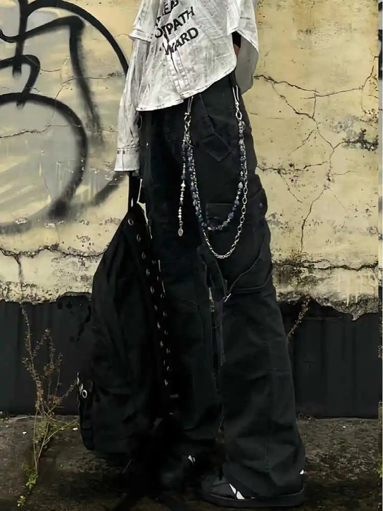 Gotiske sorte cargo bukser med løse lommer og kæder unisex