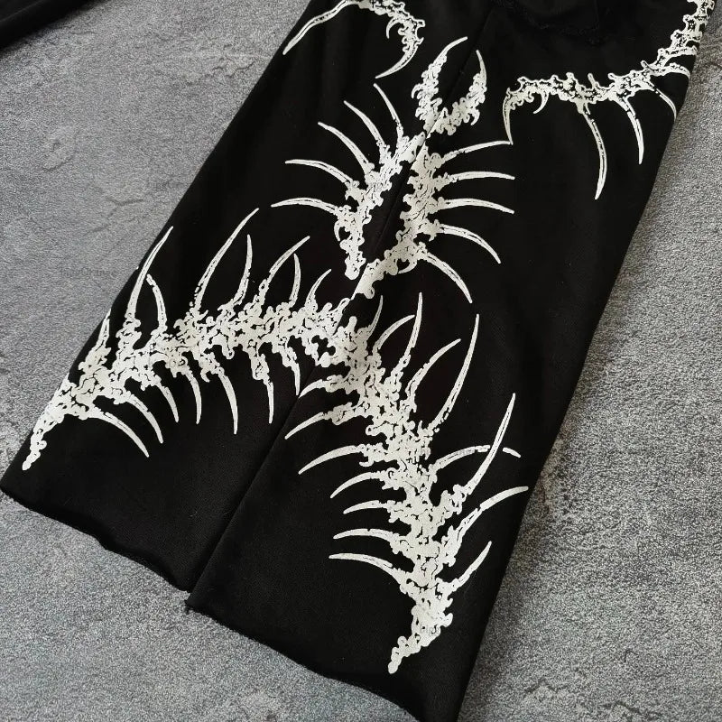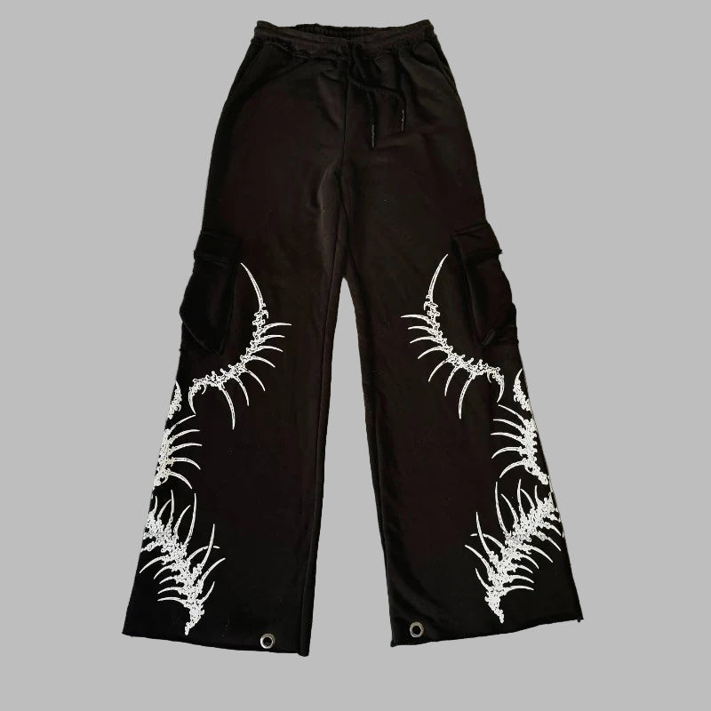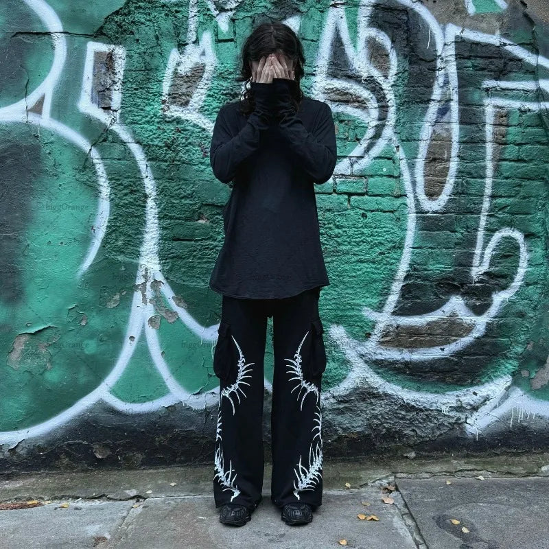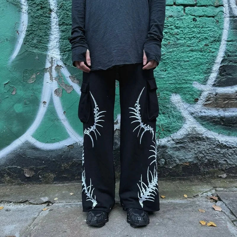 Gotiske Grunge Bukser med Skeletprint Darkwear