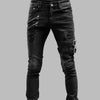 Gotiske Rock Jeans med Lynlåse og Spænder Destroyed Sorte Herre