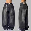 Grå Grunge Jeans med Kæder Oversize Vintage Slidte