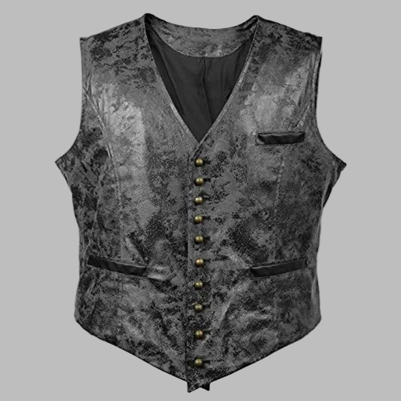 Grå Steampunk Vest med Vintage Slidt Effekt