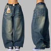Grunge Baggy Jeans med Bælte Blå XXL