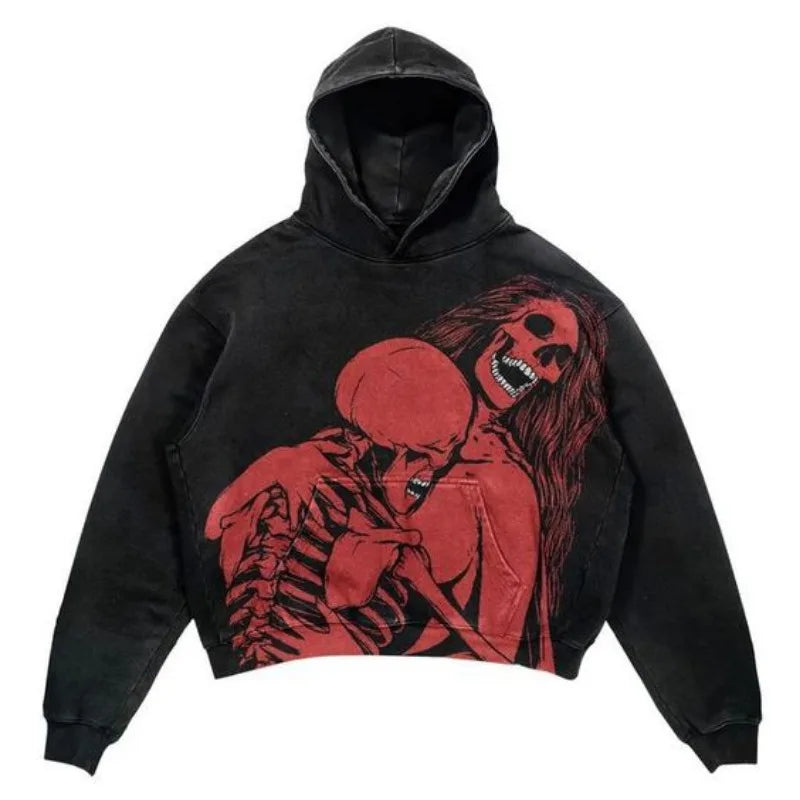 Love hoodie med grunge skeletprint