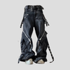 Spodnie Cargo Czarne Zamki Paski Kieszenie Męskie Punk Techwear