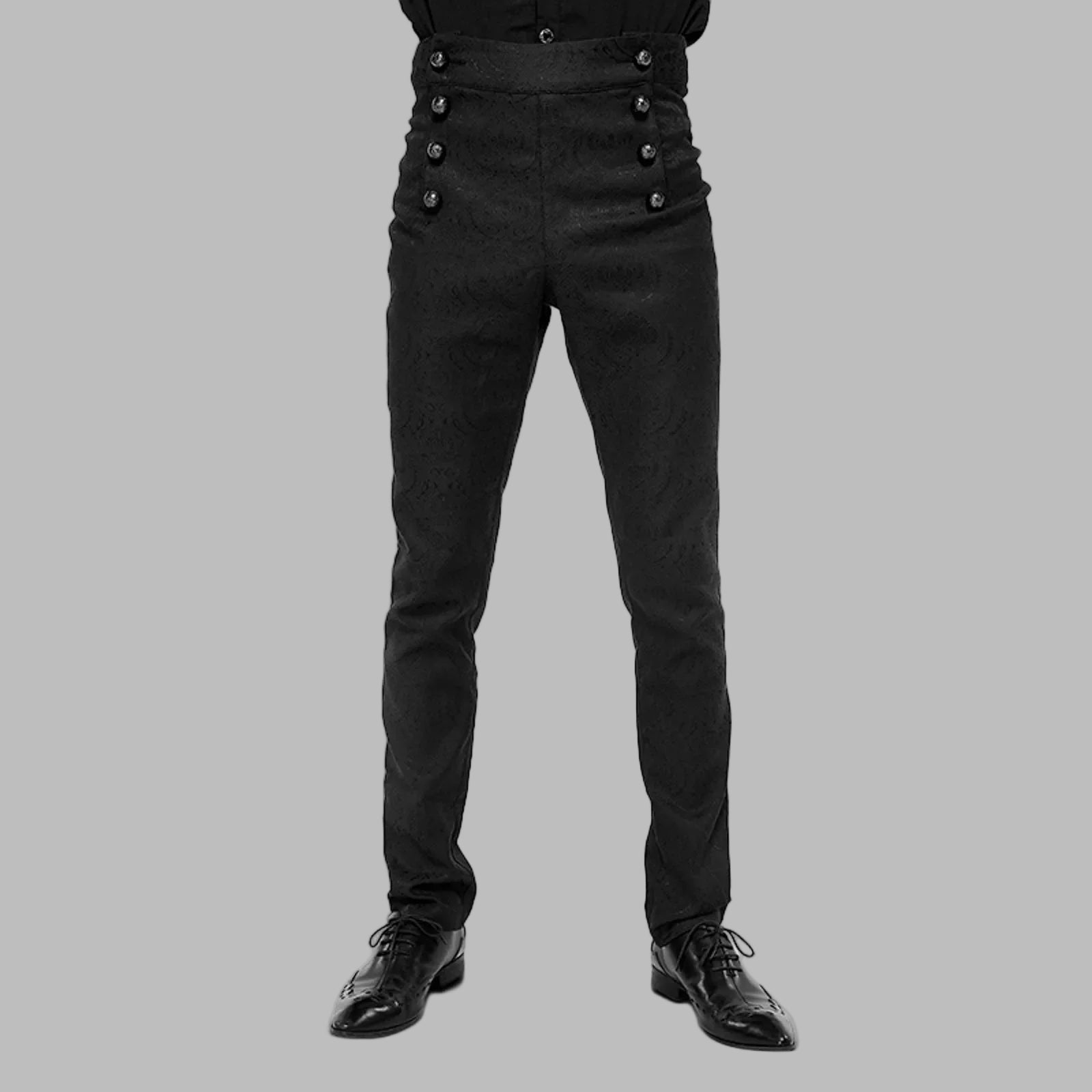 Gothic sorte herrebukser med højtaljede knapper til formelle anledninger