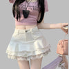 Hvid Jirai Kei Denim Nederdel med Blonde Flæse