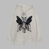 Hvid Metal Hættetrøje med Skeletvinger og Lynlås