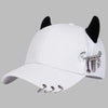 Hvid Punk Kasket med Horn og Metaldekorationer