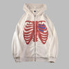 Hvid punk rock sweatshirt med lynlås og ribben motiv XXL