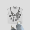 Hvid Punk T-shirt med Kæde Grafik Metal