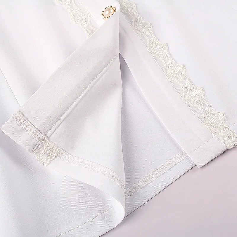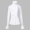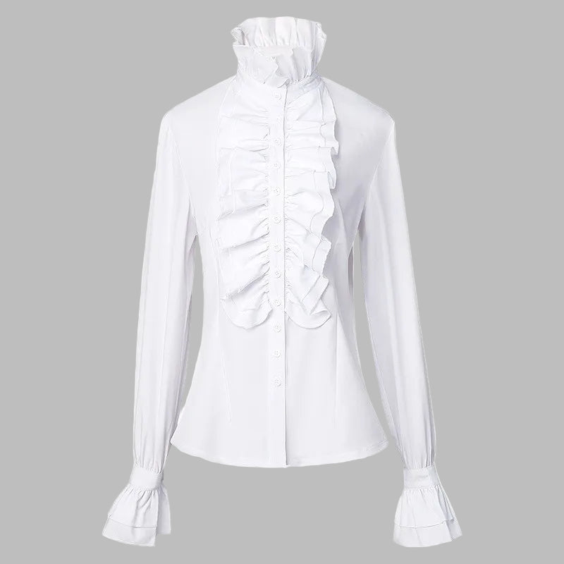 Hvid Steampunk-bluse med Flæsekrave og Pufærmer