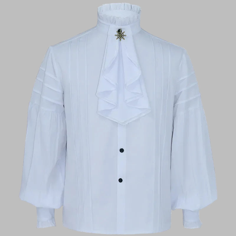 Hvid Steampunk Skjorte med Jabot og Pufærmer