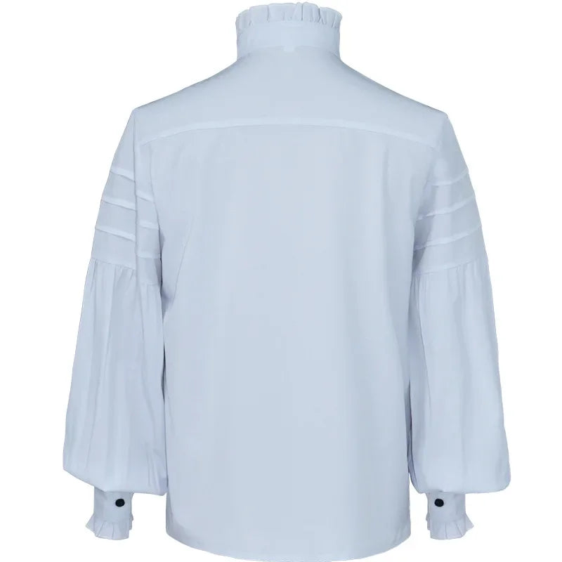 Hvid steampunk-skjorte med flæsekrave og puffede ærmer 4XL