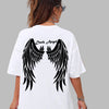 Hvid T-shirt med Sorte Punk Vinger Se muligheder