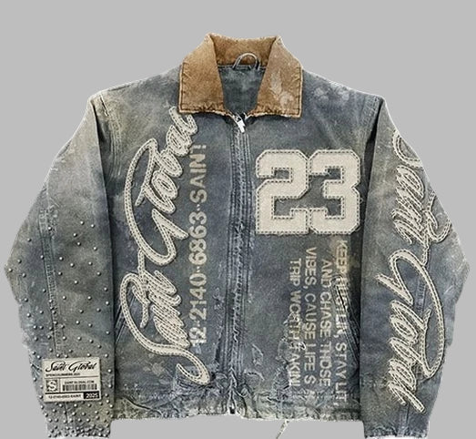 Jeansjakke Rock Grunge Metal med Tekster og Nitter Vintage