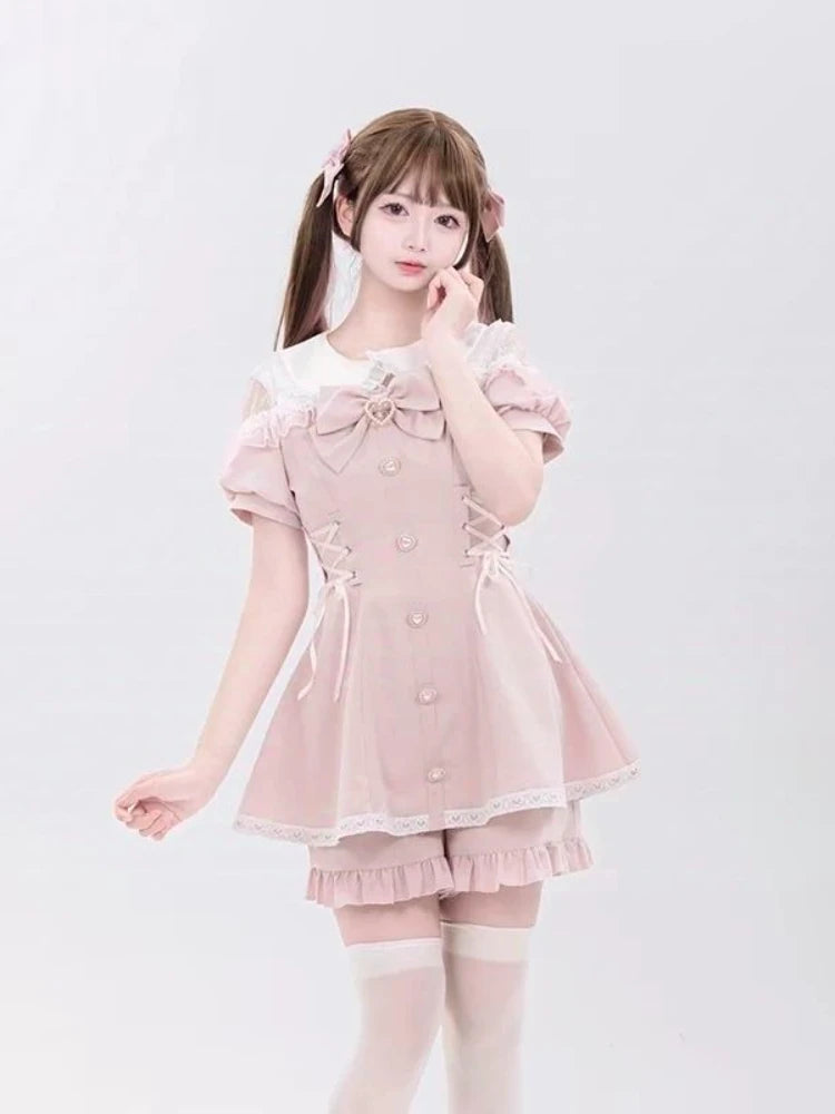 Jirai Kei Kjole med Sløjfe Pink Snøret i Siderne L