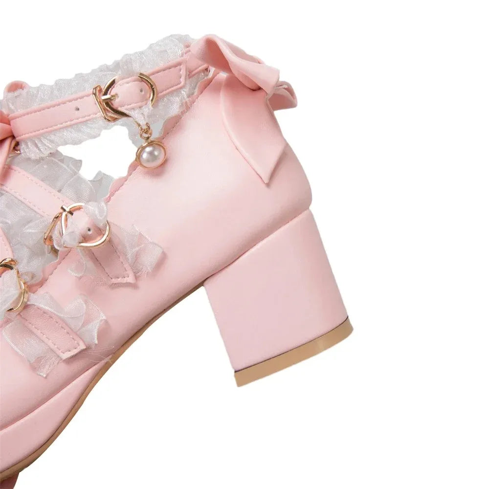 Jirai Kei Pink Mary Jane med Blonde og Perlevedhæng