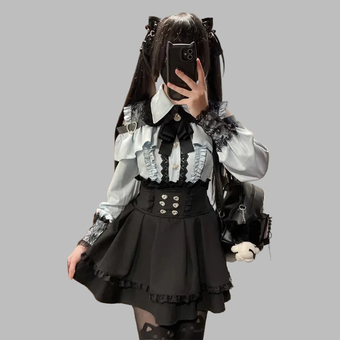 Jirai Kei sæt med sort blondeflæse Se muligheder