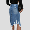 Lang grunge denimnederdel til kvinder med flossede kanter