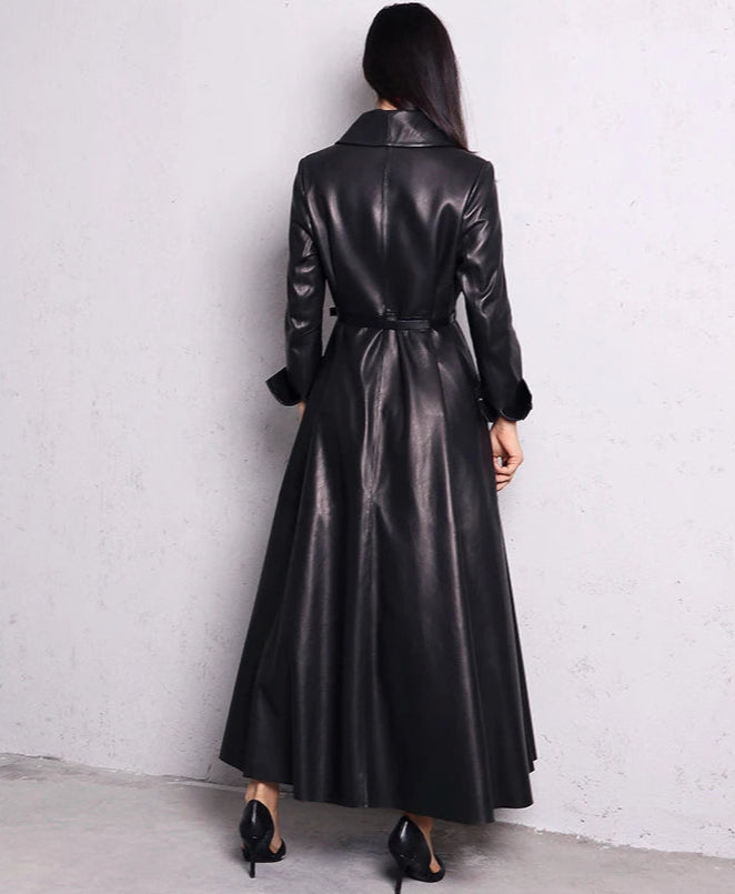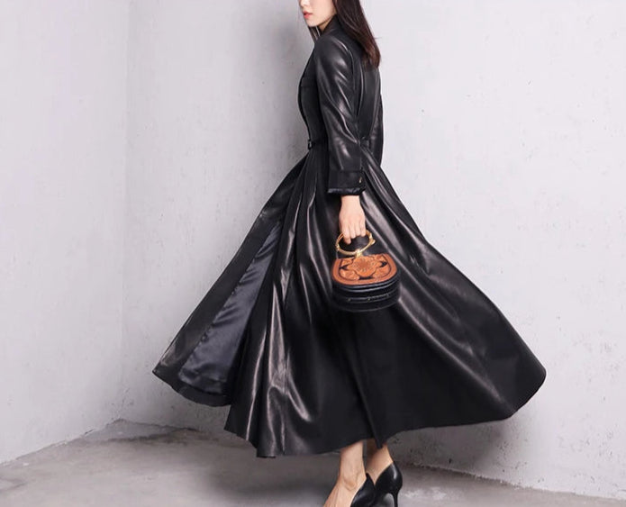 Lang frakke i sort læder, Metal Goth Rock, elegant