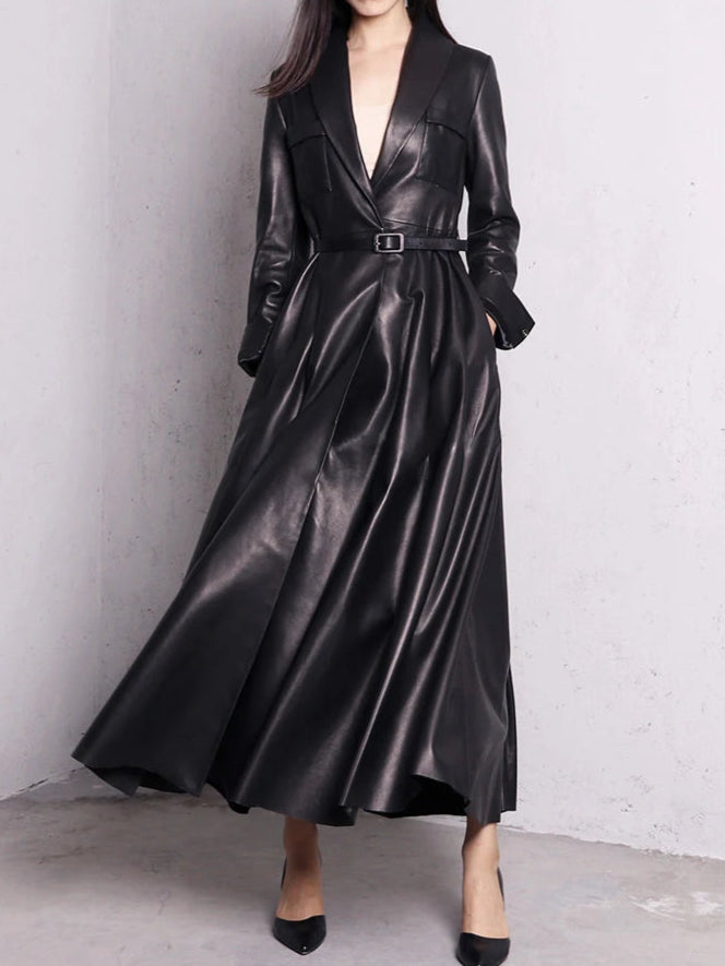 Lang Læderfrakke Metal Goth Rock Sort Elegant