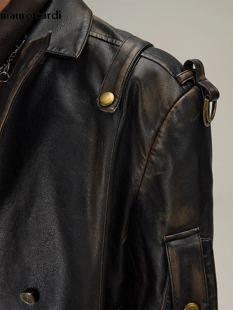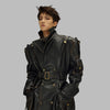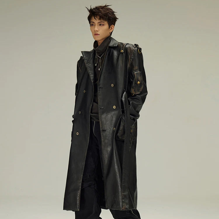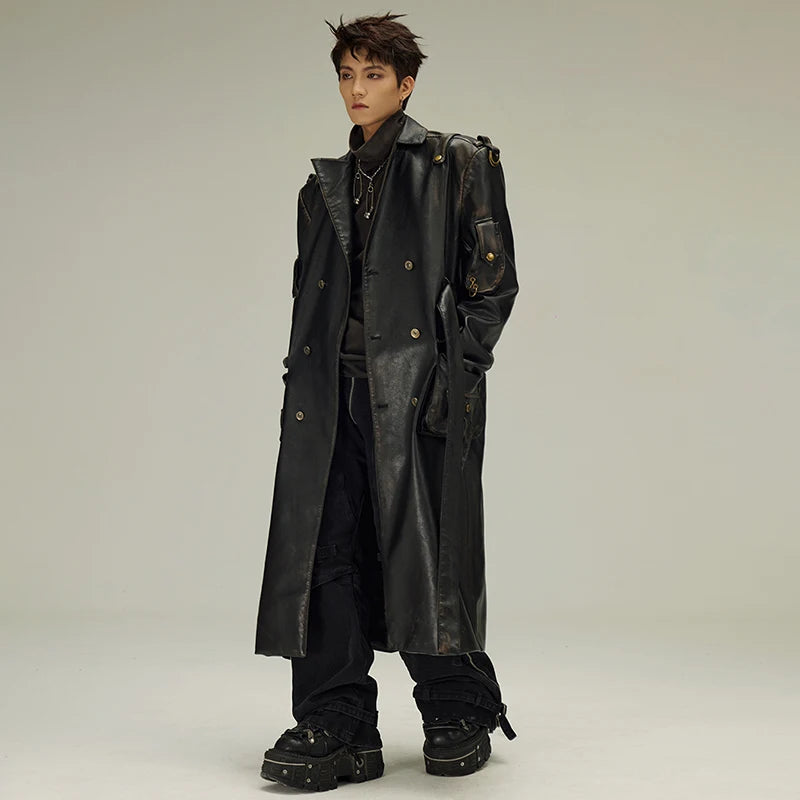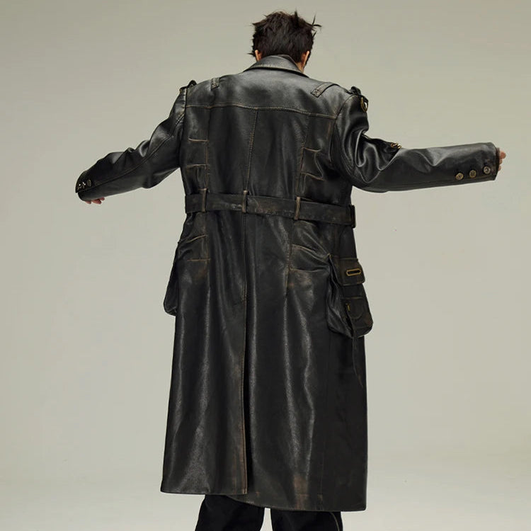Lang sort gotisk læderfrakke i alternativ stil