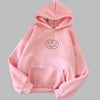 Lyserød hættetrøje med Happy Sad-emoticons i grunge-stil