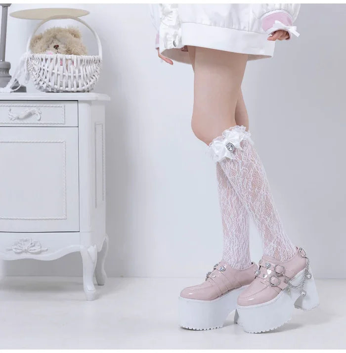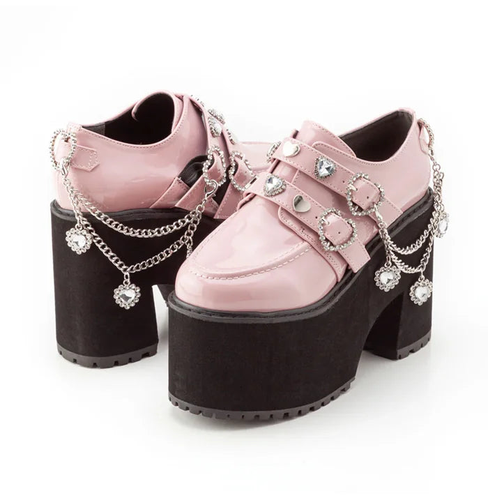 Rosa platformstøvler med kæder og nitter i punk rock stil