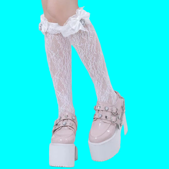 Lyserøde platformstøvler med kæder og nitter punk rock