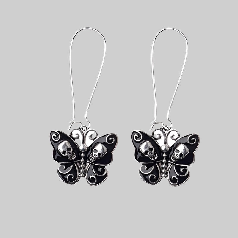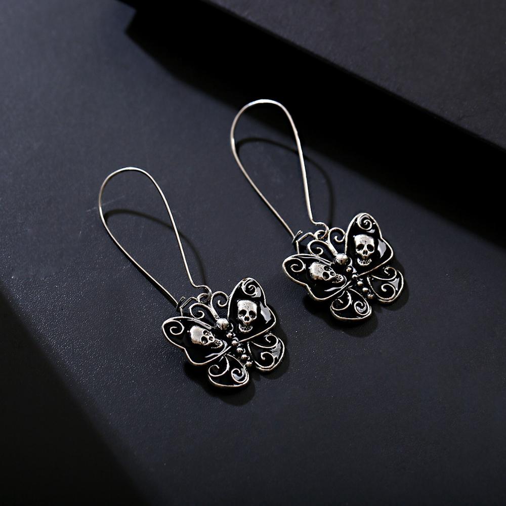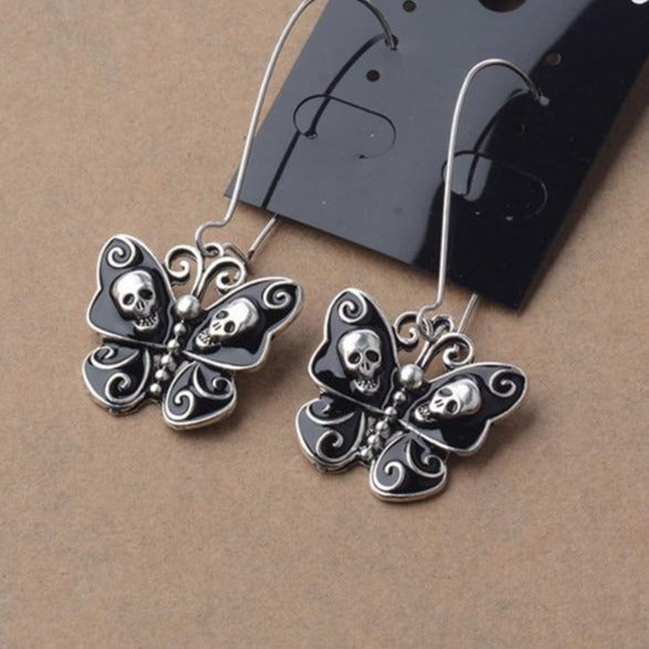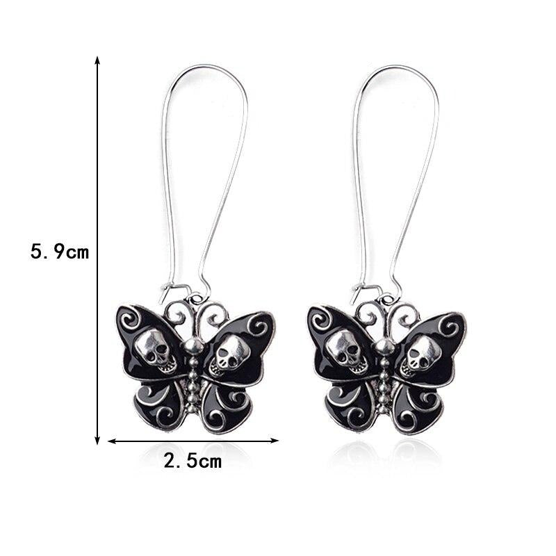 - Dekoration: kranier indgraveret på sorte sommerfuglevinger, metalornament
