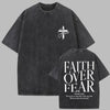 Oversize Grunge Rock T-shirt med Kors og Teksten "Faith Over Fear" 3XL